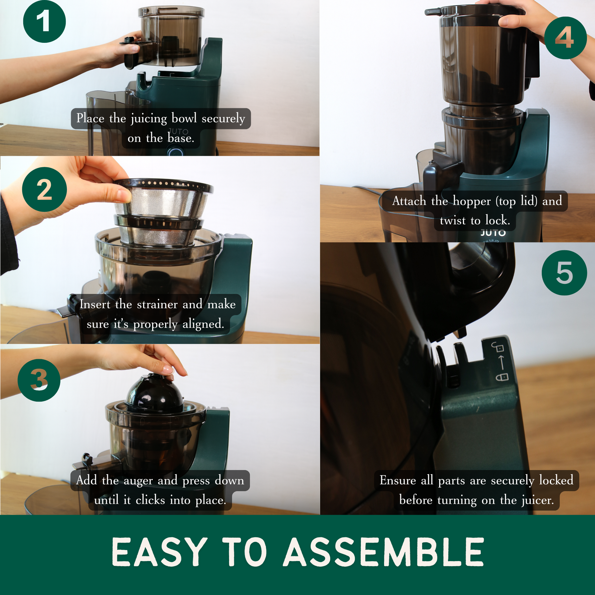 Effortless Cleaning: Designed with simplicity in mind, the JUTO juicer can be quickly disassembled and cleaned, ensuring a hassle-free experience after every use.